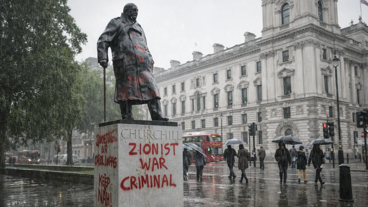 «Сионистский преступник»: в центре Лондона вандалы осквернили памятник Уинстону Черчиллю