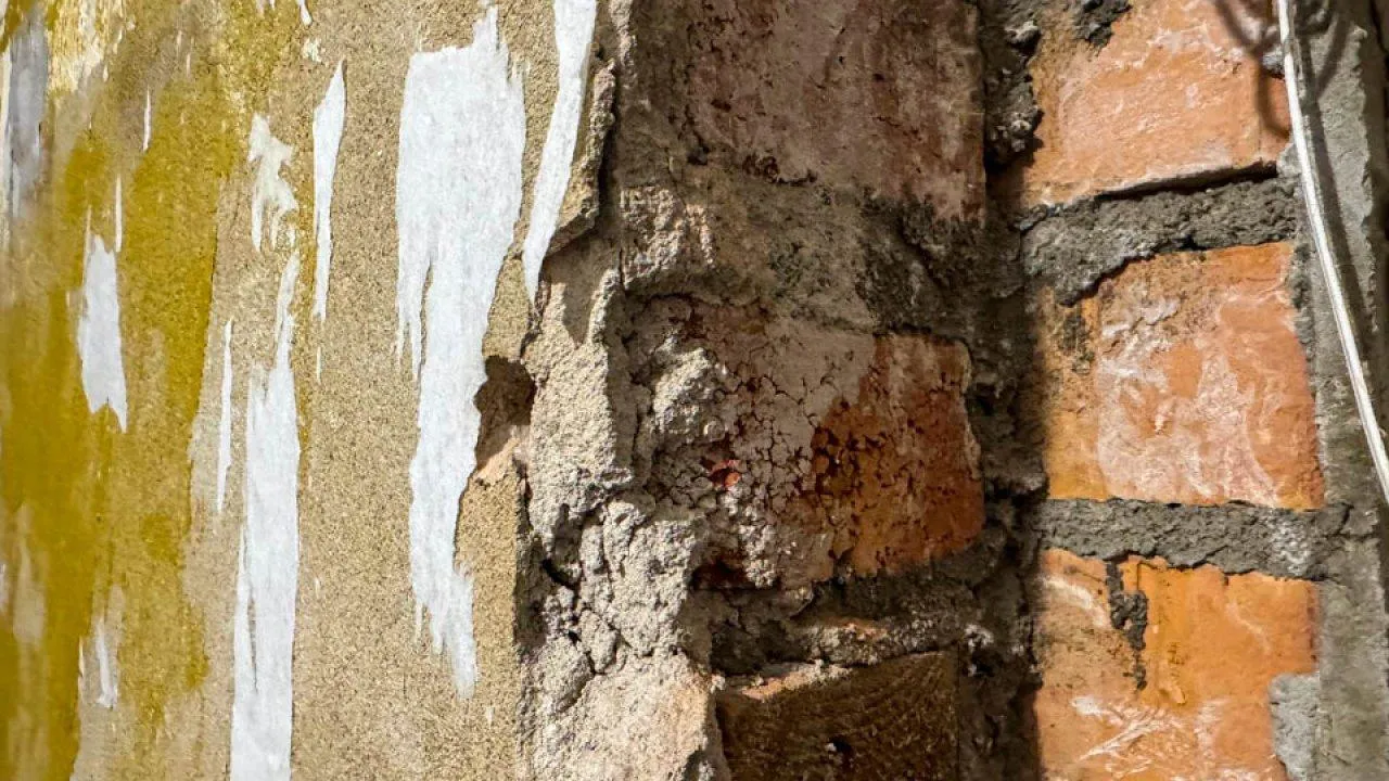 Фотографии, демонстрирующие масштаб разрушений, прислал в редакцию VSE42.RU очевидец. На снимках видно, что от фасада отвалились фрагменты различного размера, на стенах образовались многочисленные обширные «проплешины» и глубокие трещины, местами обнажилась кирпичная кладка. Часть обрушившихся элементов фасада так и лежит на земле.