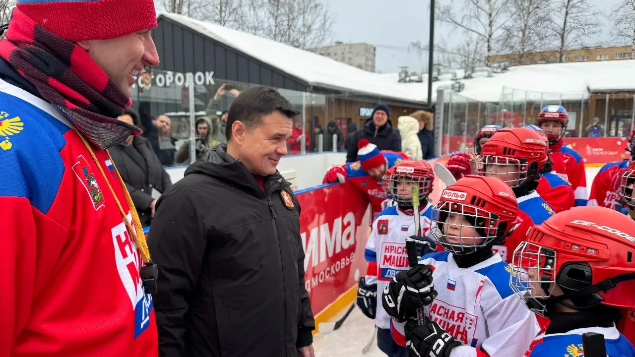 Губернатор Подмосковья посетил открытую тренировку по хоккею в Лобне