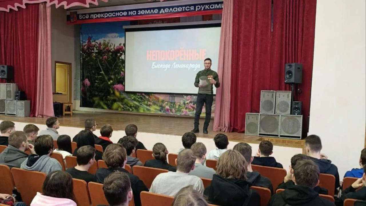 Для учащихся организовали показ тематических документальных фильмов и открытый урок. В его рамках участник специальной военной операции рассказал о жизни блокадного Ленинграда и о своем опыте службы.