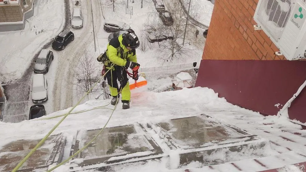 В работах задействуют промышленных альпинистов, при этом используются высотное оборудование и средства страховки. Это позволяет обеспечить безопасность жителей и предотвратить сход снежных масс и сосулек.
