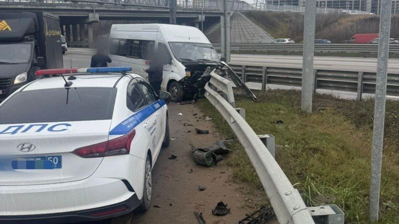 Авария произошла утром 13 ноября на 25-м км Новорязанского шоссе. Водитель микроавтобуса ООО «Люберецкая транспортная компания» не справился с управлением и врезался в грузовик, который двигался в попутном направлении. После этого маршрутка наехала на дорожное ограждение.