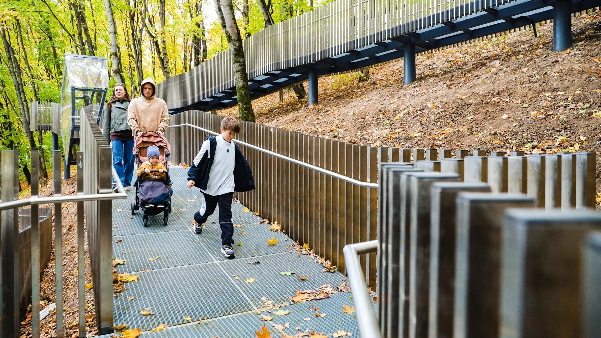 Длина маршрута составила 134 метра, он стал частью общего пешеходного пространства парка. Основой конструкции экотропы стал металлический каркас, верхним покрытием — износостойкий металл с цинковым покрытием. Для безопасности вдоль тропы обустроили перила. Рабочие также установили на ней стеклянные беседки, а возле воды — деревянную площадку с парковыми качелями, гамаками и стульями для тихого отдыха.