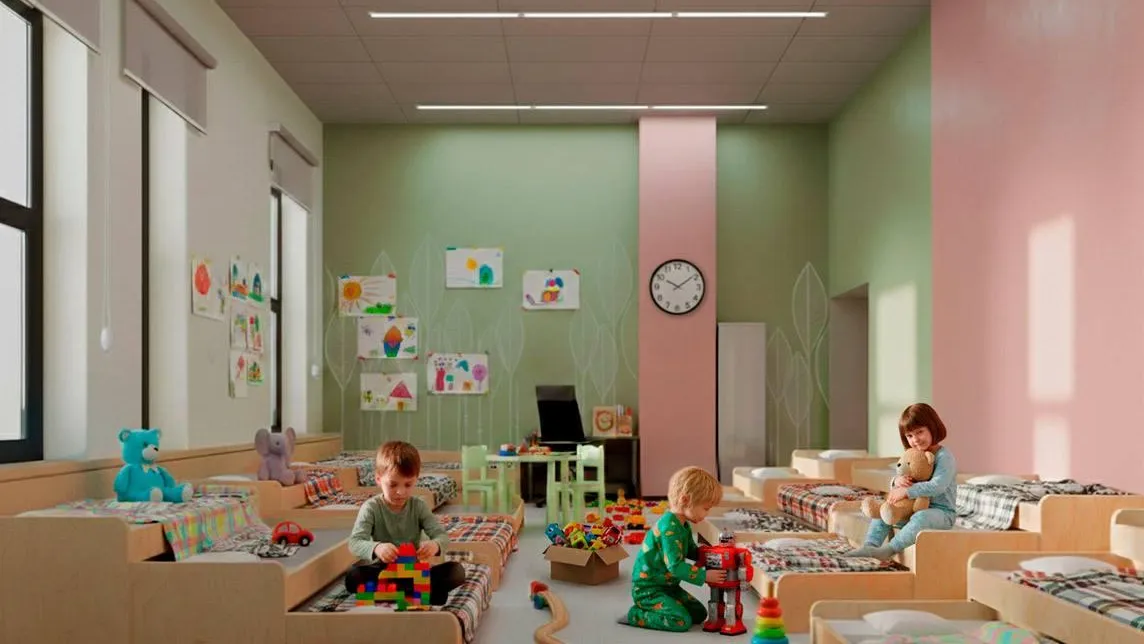 Строители ведут отделочные работы, после чего оснастят детский сад мебелью и другим необходимым оборудованием. Ввести в эксплуатацию дом № 2 вместе с детским садом планируется в апреле 2026 года. После этого его передадут муниципалитету.