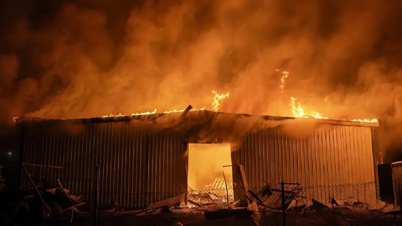 Крупный пожар произошел на складе аккумуляторов в Татарстане
