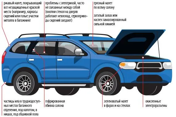 – Внимательно осмотрите труднодоступные места багажного отделения, под капотом, в нишах, под обшивкой пола. Если машина тонула, там могут остаться частички ила. Его довольно сложно отмыть полностью, – говорит эксперт.