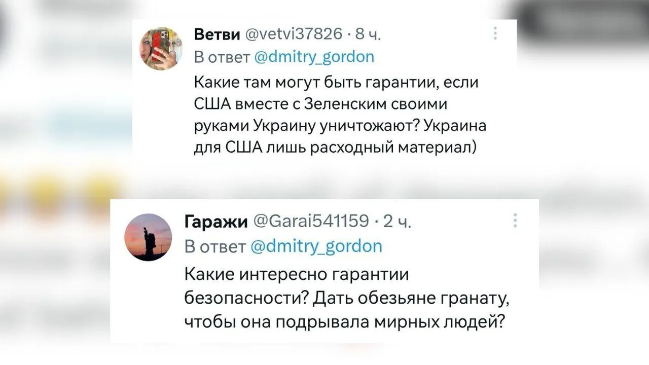 «США могут только себя прикрывать. Обвинят Украину и сольются. Так было всегда»; «Какие там могут быть гарантии, если США вместе с Зеленским своими руками Украину уничтожают? Украина для США — лишь расходный материал», — отмечают юзеры.