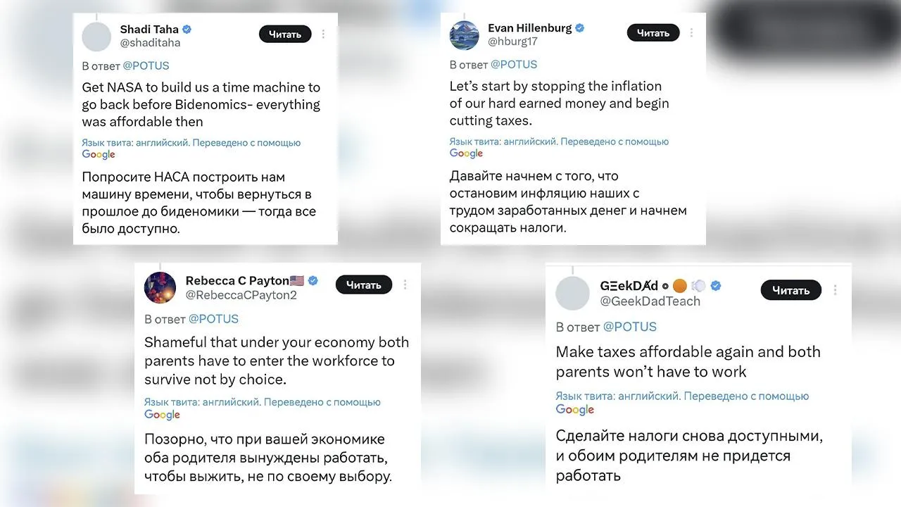 «Попросите НАСА построить нам машину времени, чтобы вернуться в прошлое до байденомики — тогда все было доступно»; «Давайте начнем с того, что прекратим инфляцию наших с трудом заработанных денег и начнем сокращать налоги», — отмечают юзеры.