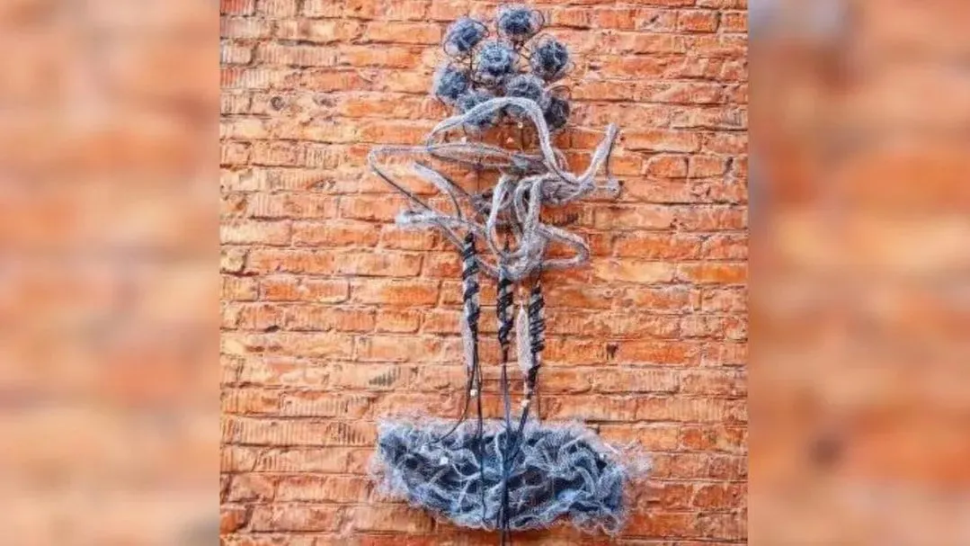 Хлопковенок изготовлен из тончайшей металлической сетки. Из-за этого его сложно заметить с первого взгляда: он кажется то ли серым облачком, то ли миражом на стене здания. Но если присмотреться, в очертаниях угадывается целый производственный цикл. Из хлопковых коробочек тянутся нити, они наматываются на веретено и превращаются в готовое полотно. Прямо на глазах у зрителей рождается ткань.