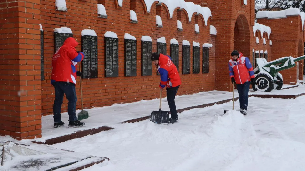Волонтеры расчистили от снега мемориал в Серебряных Прудах