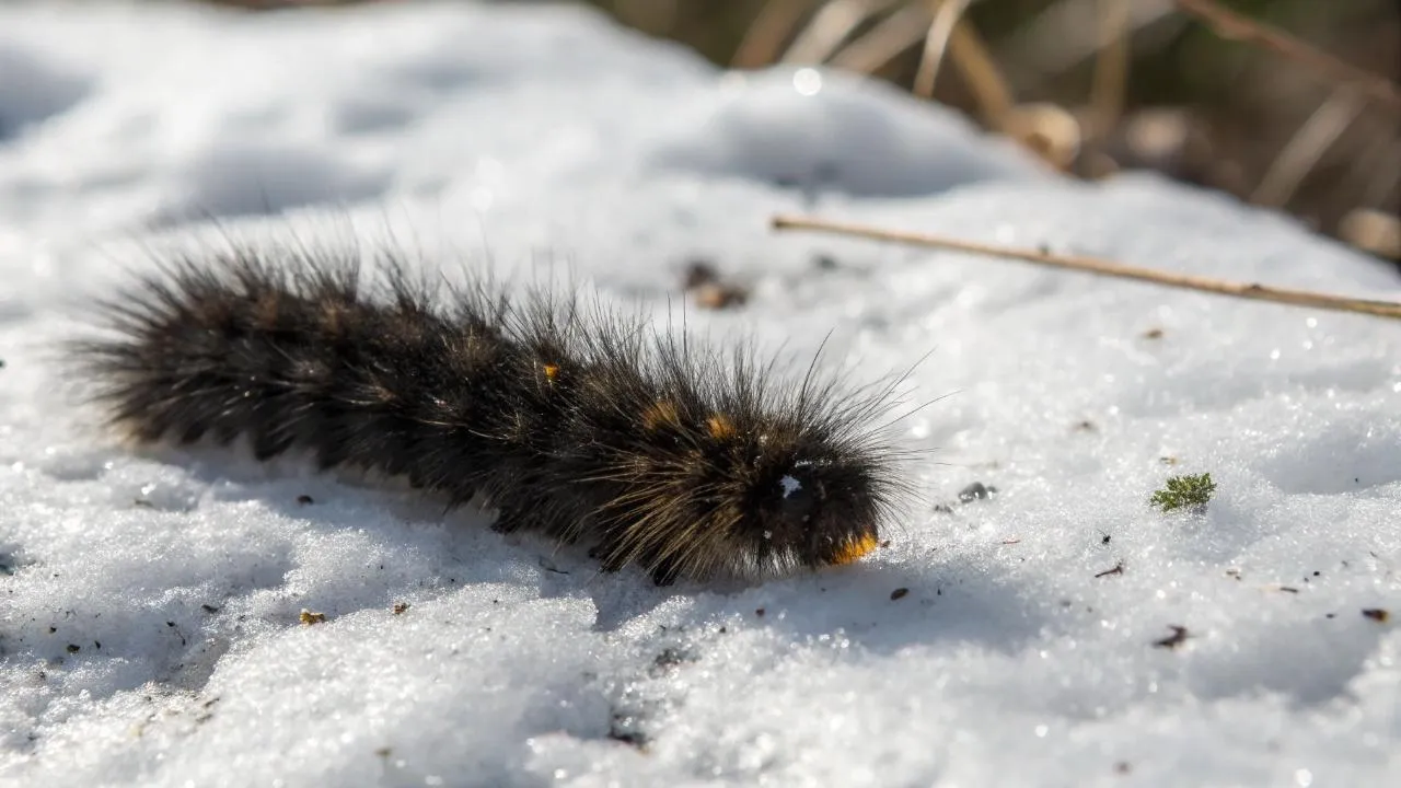 На видео, скорее всего, гусеница бурой медведицы. Обычно они зимуют в состоянии диапаузы — физиологического покоя. Прячутся в лиственной подстилке, под корой деревьев или в трещинах почвы, где пережидают холода. Но в 2026 году температура поднялась настолько, что гусеницы «проснулись» раньше срока и выползли на поверхность в поисках корма.