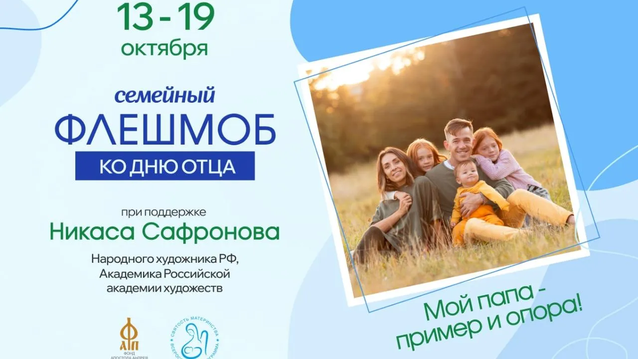 Фонд Андрея Первозванного при поддержке народного художника РФ, академика Российской академии художеств, профессора кафедры рисунка и живописи Российского государственного университета им. А. Н. Косыгина, декана факультета культуры и искусства Ульяновского государственного университета Никаса Сафронова запускает большой семейный флешмоб «Мой папа — пример и опора!».